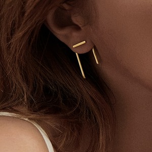KD141 ワンライン幾何学バックハンギングピアス(ゴールド)