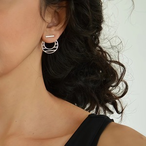 A3529-2 ラウンド幾何学イヤリング バックハンギング C型イヤリング(シルバー)