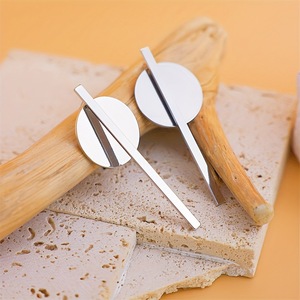 A3335-2 幾何学ストリップアシンメトリーラウンドスタッドピアス(シルバー)