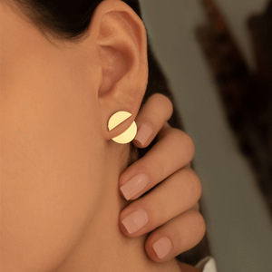 A3512-1 半円中空幾何学レディースファッションスタッドピアス(ゴールド)