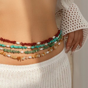 欧米の国境を越えた砂利は真珠の砂浜の腰の鎖のwaistチェーンのアクセサリの百合の単層のビーズの体の鎖を模造します。