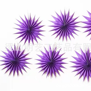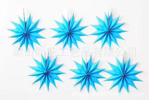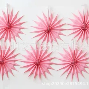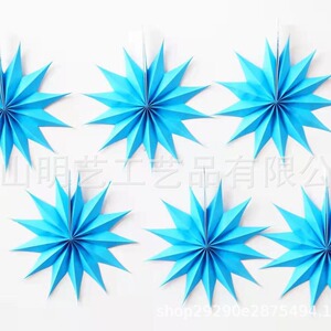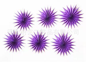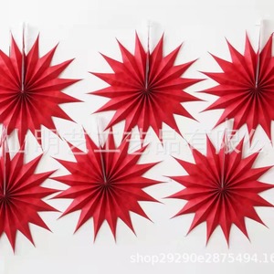 デパートのショーウインドーの装飾は星の多角的な紙の扇風機の花の室内の雰囲気のシーンを飾って折り紙の扇風機を配置します。