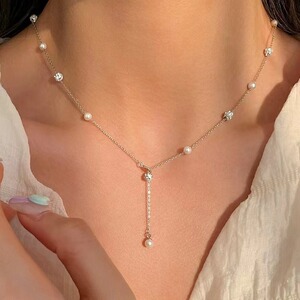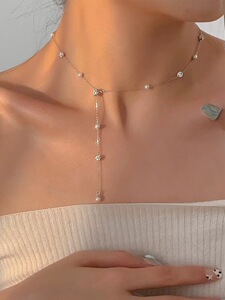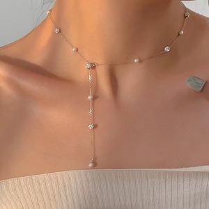 韓国版の甘い満天の星の間隔の真珠のフラッシュのボールのネックレスの女性の気質の小さい大衆の高級感の首の鎖の鎖