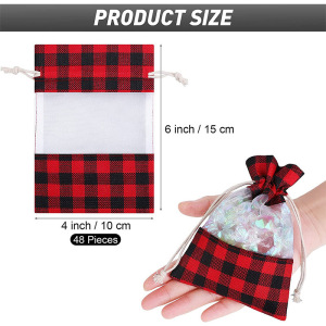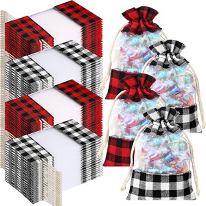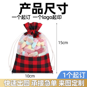 クリスマスウィンドウチェック柄ギフトバッグ巾着ポケットキャンディバッグ