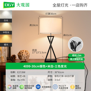 4099-電気スタンド61cm金色亜麻-三色変光6W-全スペクトル