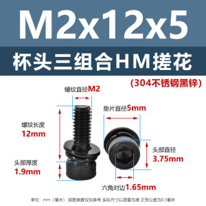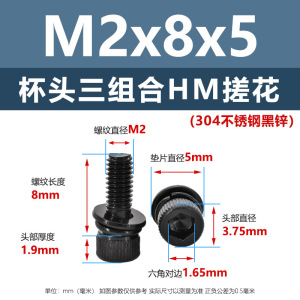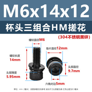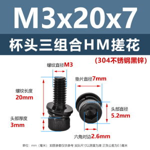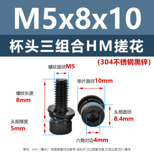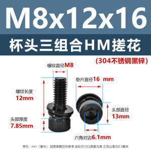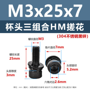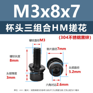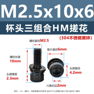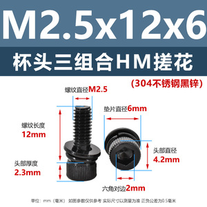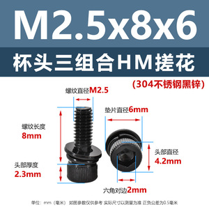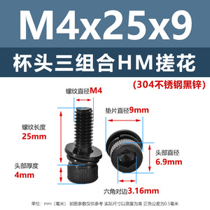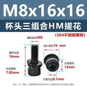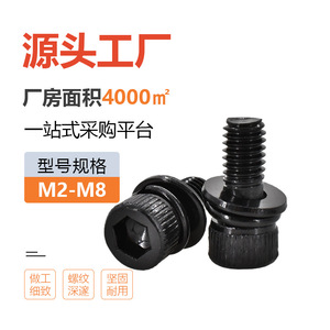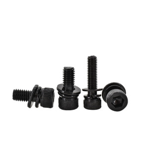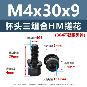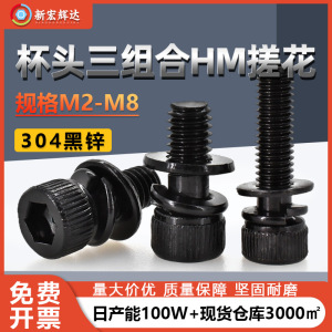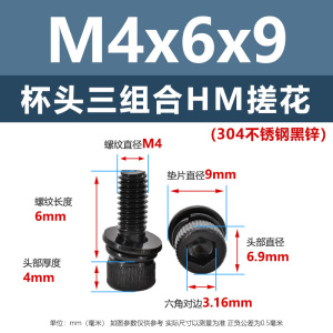 304ステンレスの黒い円柱の中六角の3つの組み合わせのねじのボルトの杯の頭は花をこすります機のねじの平弾のパッド