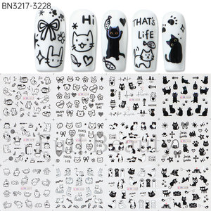 国境を越えた新しいネイルアート透かしシールins日系かわいいアニメ子猫動物落書き透かし爪貼り
