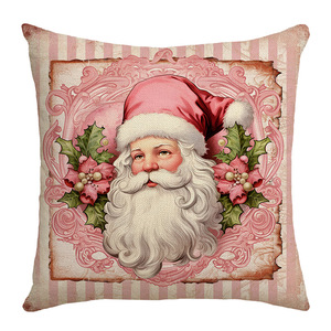 ピンクのクリスマスシリーズ抱き枕カバー亜麻プリントアメリカ式家庭用ソファクッションカバークロスボーダー枕カバー卸売り