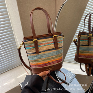 フレンチニッチポータブルコントラストカラースモールバッグ女性用2025新しいトレンディな気質多用途バケットバッグ外国風クロスボディスモールバッグ