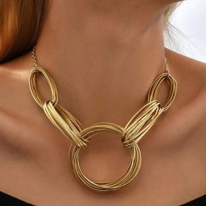 欧米の国境を越えて金色の誇張ゴシック風の多層線の輪をつなぎ合わせてネックレスを休暇します。