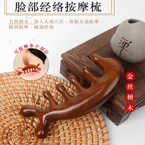 新しい多機能招き猫経絡マッサージコームゴールデンシルクサンダルウッドヘッド経絡コーム目のストレス緩和健康コーム