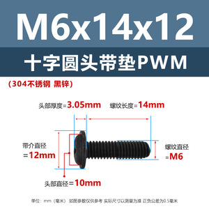 PWM6 * 14*12(304黒十字丸ヘッドパッド付きネジ)(10个)