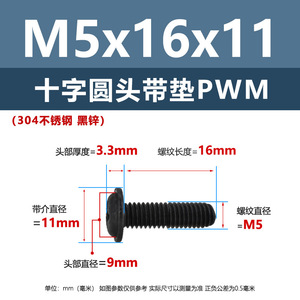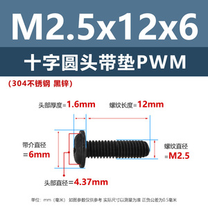 PWM6 * 16*12(304黒十字丸ヘッドパッド付きネジ)(10个)