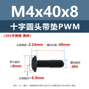PWM6 * 40*12(304黒十字丸ヘッドパッド付きネジ)(10个)