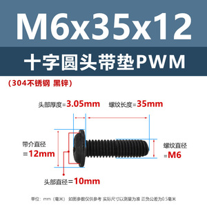 PWM6 * 35*12(304黒十字丸ヘッドパッド付きネジ)(10个)