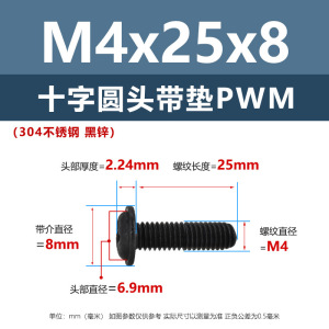 PWM6 * 25*12(304黒十字丸ヘッドパッド付きネジ)(10个)