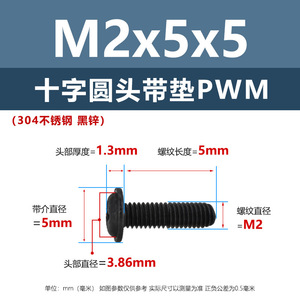 PWM2.5 * 5*6(304黒十字丸頭パッド付きねじ)(100個)