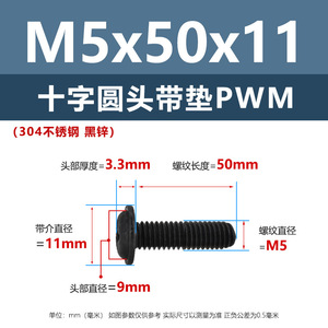 PWM5 * 50*11(304黒十字丸頭パッド付きねじ)(20個)