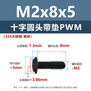 PWM4 * 5*8(304黒十字丸頭パッド付きねじ)(20個)