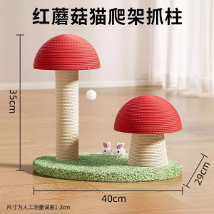 新年の赤い傘のキノコの猫は棚の剣の麻を登って爪の猫をつかんで板をつかみません。