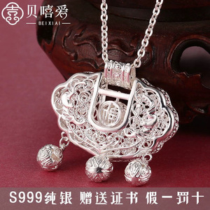 銀佳銀装飾足銀999花糸透かし福錠はペンダントの逸品を回すことができます。