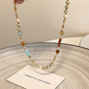 2025 新色ビーズネックレス女性の新中国風レトロ夏光高級ドーパミンブレスレットアクセサリー卸売