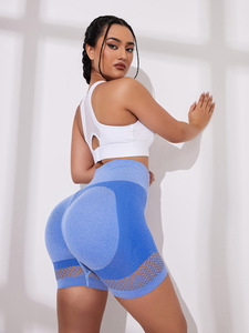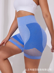 シームレスな破れ加工ヒップアップヨガショーツ ランニングスポーツ用3分丈フィットネスヨガパンツ ヨガウェア ハイウエスト速乾通気性