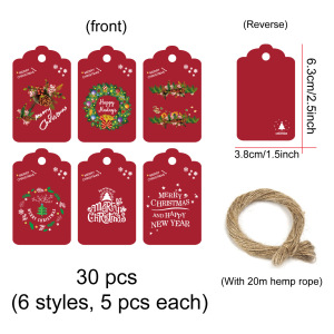 2.5x1.5インチ、30個のクリスマスプレゼントのペンダントテープのひも付き祝日の紙のクリスマス吊り下げラベル