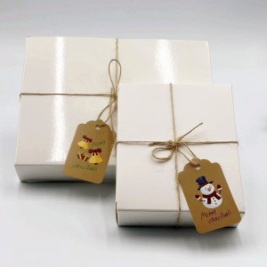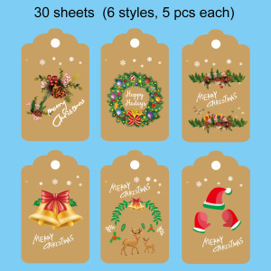 2.5x1.5インチ、30個のクリスマスプレゼントのペンダントテープのひも付き祝日の紙のクリスマス吊り下げラベル
