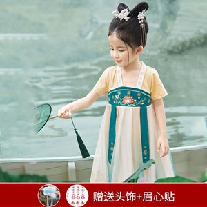 漢服の女の子の子供の夏の半袖の唐服の夏のワンピースの子供の古風なスカートの女の子の赤ちゃんの夏服の女性
