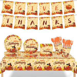 七面鳥感謝祭パーティー紙皿使い捨て紙コップティッシュテーブルクロス祝日パーティー食器カエデ秋カボチャ