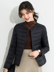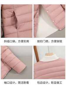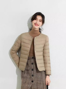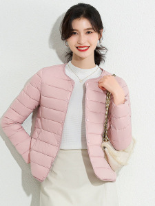 新型の薄い羽毛の綿服の女性の中に短いタイプの小さい綿入れの上着の中の大胆な丸首の保温服を着ます。