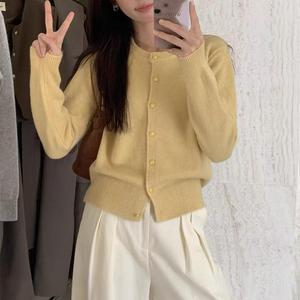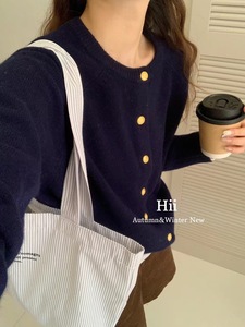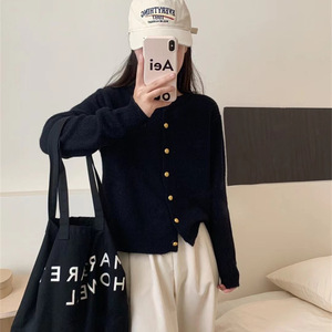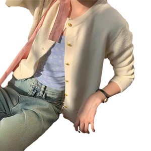 レトロで優しい風の小金はニットの女性のカーディガンを掛けます。