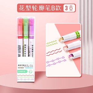 花型の輪郭のペンの双線の波の曲線の筆の速乾のマークの手帳のペンのカラーの学生の文房具の蛍光のペンの卸売り