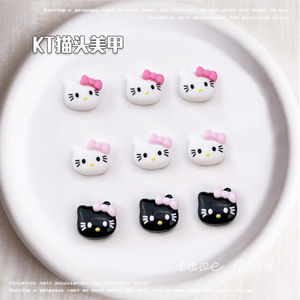 ネイルアートキティ猫アクセサリー猫ヘッド弓黒革 y2k 漫画 kt 猫立体小物カデキティ猫