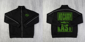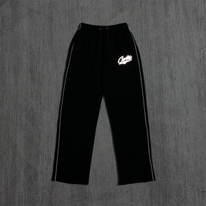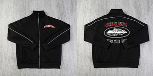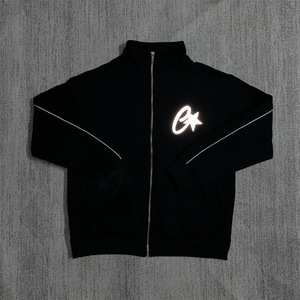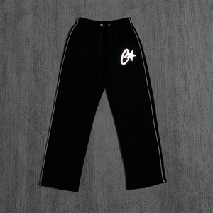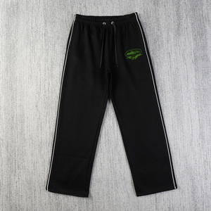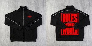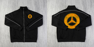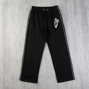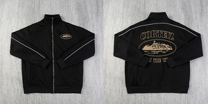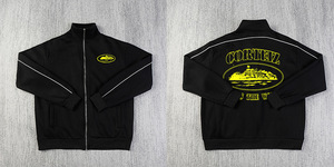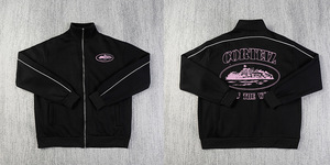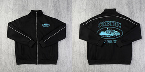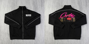 アメリカンレトロな恶魔島プリントのスタンドカラー裏起毛ジップアップジャケットとハイストリート男女兼用カジュアルパンツのセット