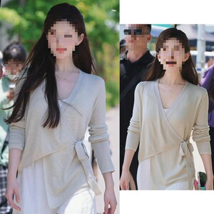 私はまぶしいです。趙露思同項vネックのウエストニットの不規則なカーディガンの薄い日焼け止めの上着です。
