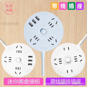 電源タップ、丸型コンセント、USB付き、超薄型、壁掛け、フラットプラグ、電源タップ、延長コード、フラットヘッド