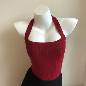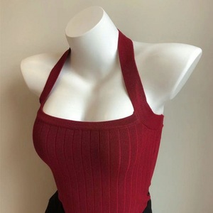 G 夏薄い香港スタイルサスペンダーノースリーブベスト女性のレトロレッドニットバックレススリムショートホルターネックワイドショルダーストラップ