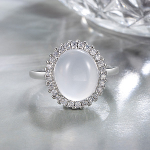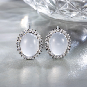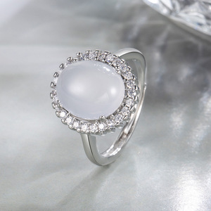 氷透白玉髄楕円形満ドリル指輪ピアスセットの開口部は少女の贅沢な高級感を調節できる