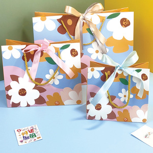現物小清新手提げ袋ins森系花鳥ギフト紙袋リボン付きプレゼント袋キャンディーお返し