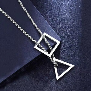 Ins風幾何学ペンダントチタン鋼ネックレス三角形正方形組合せ式シンプルな男女ネックレスが取れない