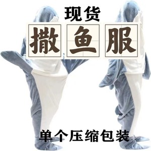 国境を越えたサメ漫画パジャマサメ連体寝袋フランネルサメ毛布ホームウェア連体パジャマ