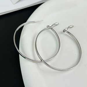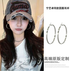 寧芸卓の同じタイプの大きい素の輪の耳飾りの欧米の誇張の輪のイヤリングの女性の純銀の針のピアスの広い面の耳の輪
