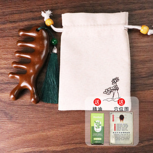 ドルフィンコーム + タッセル + ツボマップ付きコットンとリネンのバッグ