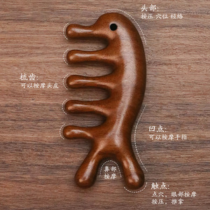 イルカの檀木マッサージ櫛の頭の経絡櫛の広い歯の櫛の多機能の頭は神器の木の櫛の贈り物の箱を治療して人に送ります。