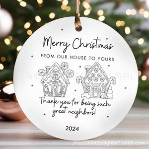 国境を越えた新型アマゾン円形クリスマス陶磁器ペンダントクリスマスツリー吊り下げブランド吊り下げ陶磁器ペンダント