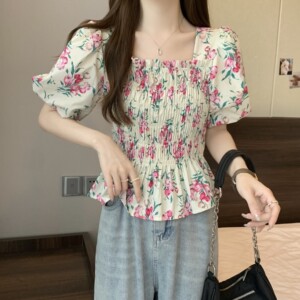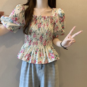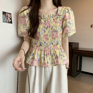 お姫様のショートギャルの方襟のお茶の休憩の花の新型のラッパの袖はやせていてカジュアルなフランスのカジュアルな半袖の上着を現します。