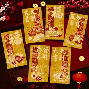 2026年馬年向け新デザイン、金箔入りクリエイティブな金色の福袋、新年・春節のお年玉袋