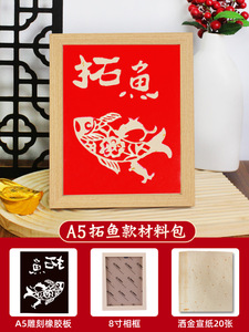 手作りの非遺産拓印diy材料は子供の彫刻版の魚の竜福の活字の印刷術のテンプレートのセットのツールを包みます。